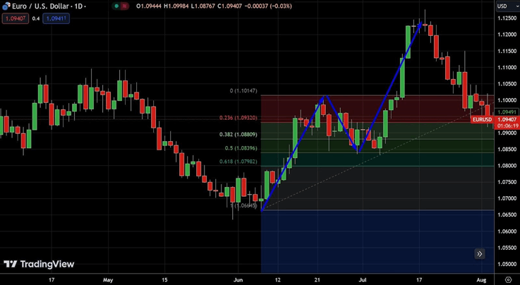 EUR/USD Tageszeitrahmen: Handel mit Fibonacci-Retracement - Quelle: Tradingview