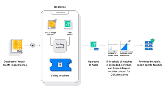 The National Center for Missing and Exploited Children, or NCMEC has a database of known CSAM (Child Sex Abuse Material). Apple’s new features aims to match images that correspond to CSAM. Here is how they plan to do it, in five steps: