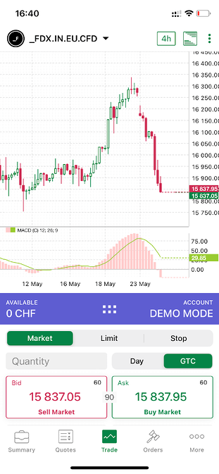 Here is the MACD indicator on a chart for the DAX 40 index (ticker FDX)