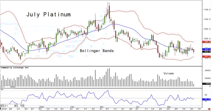 Looking ahead, the outlook for platinum looks skewed towards further downside given the seeming inevitability of further central bank tightening and the risks of a global slowdown. With inflation still at elevated levels and expected to persist over most of this year, tighter financial conditions and continued supply restraints linked to COVID and the ongoing violence in Ukraine, platinum prices can easily fall further into the end of the year.